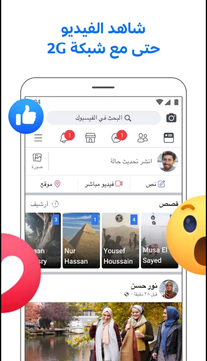تستخدم هذه النسخة من فيسبوك بيانات اتصال أقل وتعمل مع كل حالات شبكات الاتصال.