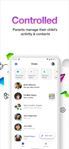 مع Messenger Kids ... الآباء لديهم المزيد من السيطرة • ﯾواﻓق اﻵﺑﺎء ﻋﻟﯽ ﮐل ﺟﮭﺔ اﺗﺻﺎل ، ﺣﺗﯽ ﯾﺗﻣﮐن اﻷطﻔﺎل ﻣن اﻟدردﺷﺔ ﻓﻲ ﺑﯾﺋﺔ أﮐﺛر أﻣﺎﻧًﺎ وﺳﯾطرة. • يمكن للوالدين إزالة أي اتصال في أي وقت • يمكن للوالدين استخدام وضع السكون لتعيين أوقات عندما لا يستطيع طفلهم استخدام التطبيق. • لا تختفي الرسائل ولا يمكن إخفاؤها في حالة رغبة الوالدين في تسجيل الوصول. • لا توجد إعلانات أو عمليات شراء داخل التطبيق ، والتطبيق مجاني للتنزيل. الاطفال لديهم المزيد من المرح • تساعد الملصقات الملائمة للأطفال ، وملفات GIF ، والإطارات ، والرموز التعبيرية الأطفال على التعبير عن أنفسهم بشكل خلاق. • تأتي مكالمات فيديو فردية أو جماعية مع أقنعة ممتعة وأخرى تفاعلية. • تتيح الكاميرا المليئة بالمزايا للأطفال إنشاء مقاطع فيديو وتزيين الصور لمشاركتها مع أحبائهم. يعمل مع رسول • الآباء والأمهات والبالغين المعتمدة من الآباء الدردشة مع الأطفال من خلال رسول. • يعمل على جميع الأجهزة اللوحية والهواتف الذكية. • لا حاجة إلى رقم هاتف - تحتاج إلى Wi-Fi فقط. Made Safer for Kids • إنشاء حساب Messenger Kids لطفل لا يقوم بإنشاء حساب Facebook لهم. • يستخدم الآباء والأوصياء حساباتهم الخاصة على فيسبوك لإنشاء حساب Messenger Kids لأطفالهم. • يتوفر للأطفال خيار الإبلاغ عن جهات الاتصال أو حظرها والإبلاغ عن محتوى غير لائق. إذا قدم طفل تقريرًا ، فسيتم إبلاغ ولي الأمر أو الوصي عليه. نحن نعمل دائمًا على تحسين Messenger Kids. إذا كنت ترغب في مشاركة أي تعليقات معنا أو لمزيد من المعلومات ، فقم بزيارة messengerkids.com